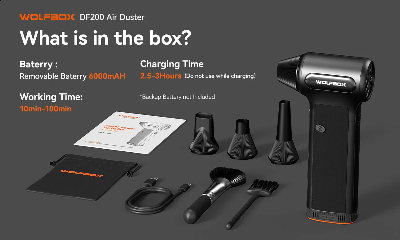 WOLFBOX DF200 Electric Powerful Fan Duster Wireless Air Blower Air Duster 3-Spee